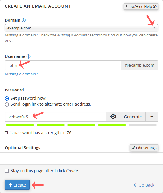 4. Under Create An Email Account, fill up the following details: