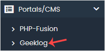 4. On the left side, locate the Portal/CMS category. Click on it and then on the Geeklog link that appears.